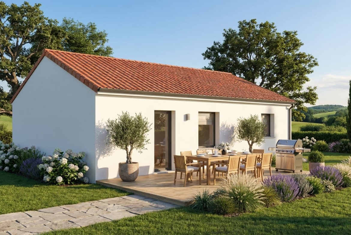 En quête d’une maison de dimension raisonnable et très pratique, vous allez être séduits par ce modèle de plain-pied aux lignes intemporelles. Avec une surface de 80 m², cette maison dispose de 3 chambres et de 4 pièces, offrant un espace de vie optimisé et sans place perdue.