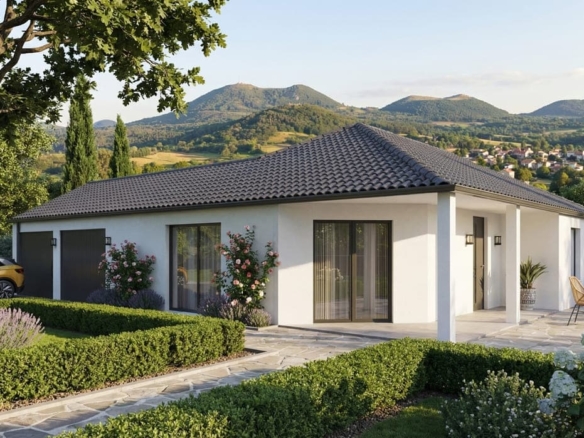 L'enduit bi-ton de la façade apporte une touche moderne et élégante à cette maison. De plus, les options les plus demandées par nos clients, comme les menuiseries en aluminium, sont disponibles pour personnaliser votre future habitation selon vos goûts.