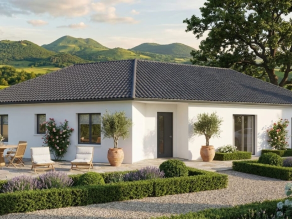 Avec une surface de 85 m², cette maison traditionnelle comprend 4 pièces, dont 3 chambres, et un garage intégré. Elle se décline en versions à 2 pans ou 4 pans, selon vos préférences. Parfaitement équipée, la Prunière est en effet la maison à petit prix par excellence.