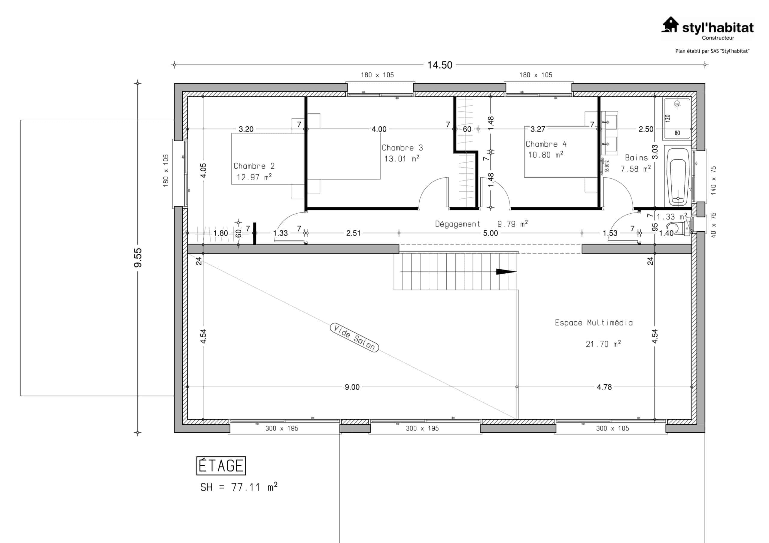 Découvrez le modèle Emeraude de la gamme Styl Habitat, une maison traditionnel idéale pour plain pied. Sa conception rectangulaire offre une optimisation parfaite de l’espace, avec une surface habitable allant de 180.0 m² à 240.0 m².